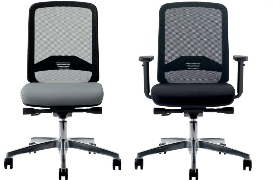 Bürodrehstuhl Bali mit atmungsaktiver Netzrückenlehne und gepolsterter Sitzfläche.